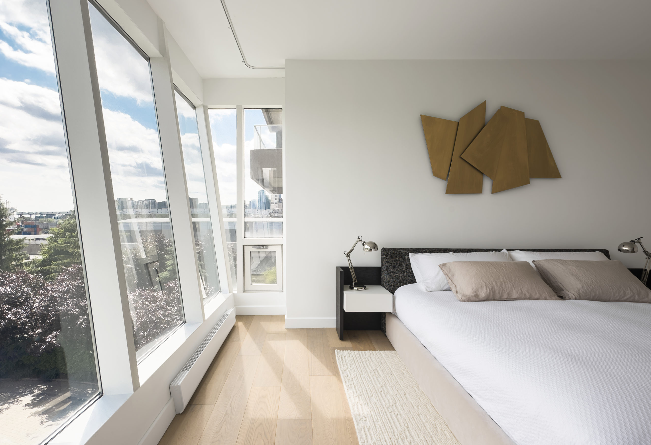 Dans ce magnifique condo, chaque pièce a été équipée de stores motorisés. Grâce à un système domotique centralisé, les propriétaires peuvent contrôler ces éléments à partir d’une application sur leur smartphone ou via des claviers muraux. Ils peuvent ouvrir et fermer les stores en un simple clic, pour ajuster l’éclairage naturel à tout moment de la journée.